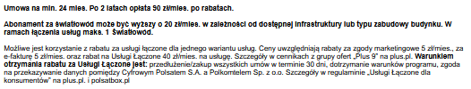 Polkomtel Sp. z o.o. z siedzibą w Warszawie, 02-673 Warszawa, ul. Konstruktorska 4, zarejestrowana w rejestrze przedsiębiorców Krajowego Rejestru Sądowego pod numerem 0000419430, kapitał zakładowy 2.360.069.800,00 zł. Sąd rejestrowy: Sąd Rejonowy dla m. st. Warszawy, XIII Wydział Gospodarczy Krajowego Rejestru Sądowego. NIP 527-10-37-727. REGON 011307968. |