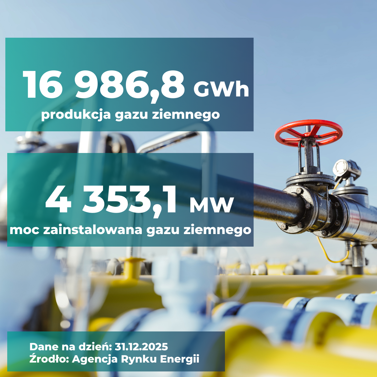 Podczas gdy uwaga opinii publicznej skupia się na przekroczeniu bariery 50% mocy w OZE, to gaz ziemny stał się w 2025 roku „cichym bohaterem” stabilności systemu. Według #daneARE, elektrownie zawodowe wyprodukowały z gazu 16 986,8 GWh energii, co stanowi potężny skok z poziomu 13 105,8 GWh w roku ubiegłym.