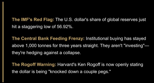 If you have a 401(k), IRA, or TSP, you cannot afford to stay on the sidelines. During this live webinar, Jeremy Blossom, Benny Johnson, Jason Hanson, and Ken Rogoff will reveal the "2026 Wealth Protection Playbook." You'll learn the truth about de-dollarization and the specific steps you can take to shield your purchasing power from a devaluing currency. Don't be the person reading about the "big move" after it's already happened. Get positioned now. — Advantage Gold P.S. We are expecting a record turnout for this Summit given the $5,000 gold milestone. Seats for the live webinar are limited. Register now to guarantee your spot and your free book.