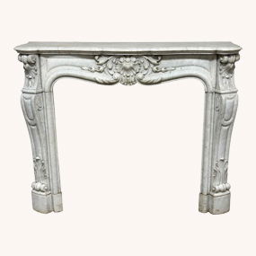 A Stately Carved White Carrara Italian Marble Fireplace Mantle
