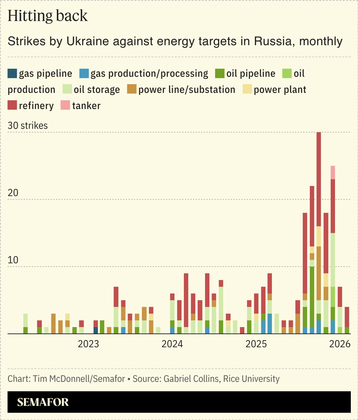 Middle East countries should look to Ukraine for guidance on how to defend their energy infrastructure against drone and missile attacks, security experts said. No country in the world has as much experience as Ukraine in both managing an onslaught against its power plants, and finding creative ways to strike its adversary’s energy infrastructure. For now, air defense systems around the Gulf have been reasonably effective in blocking many Iranian attacks. But the chief lesson of Ukraine is about modern military economics, said Gabriel Collins, an energy security researcher at Rice University who this week published an in-depth study of Ukraine’s energy counterattacks against Russia: It quickly becomes unsustainable to take down $50,000 drones using multimillion-dollar missiles. By the same token, using a few dozen drones to strike an economically vital oil refinery is a great deal, and energy infrastructure will continue to be a top-tier military target in most future global wars, Collins said. Ukraine’s experience has shown that many energy assets are simply too big to defend completely. But the country’s multi-layered defensive system — from simple concrete barriers around substations, to the widespread use of electronic signal jamming, to teams that rove around on pickup trucks fitted with 50-caliber machine guns to shoot down drones — has significantly tilted the cost balance in Ukraine’s favor, Collins said: “What you want to do is move that exchange ratio against them as much as you can.” |