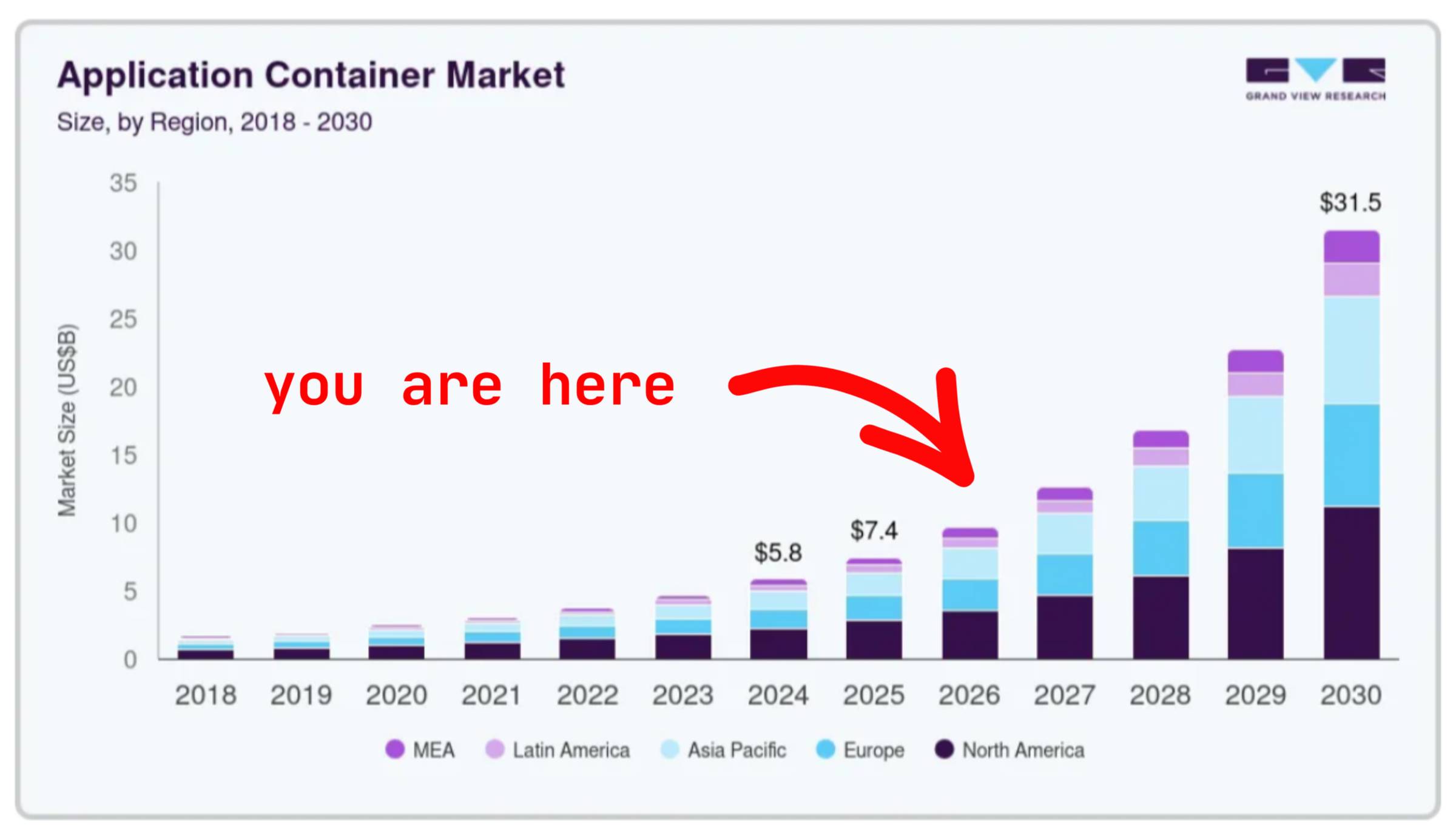 Containers solve this by packaging everything each app needs into its own unit and running each unit separately on the server. Each “carpenter” shows up with their own van and their own tools. No fighting over hammers. How Containers Became StandardContainers are a relatively recent development in the industry. They became popular in 2013–2015 with the rise of Docker, and then “standard infrastructure” by roughly 2017–2018. This is where most people make a mistake. They hear “Docker is important,” open YouTube, and jump straight into Dockerfiles and random commands. When something breaks, they just copy‑paste fixes from ChatGPT because they don’t understand what containers actually are. What powers containers under the hood? Linux. Containers are implemented using Linux features (like namespaces and cgroups). You don’t need to remember those names yet, but this is why I push you to start with Linux and the command line. If you understand Linux deeply, containers are 10x easier to learn and debug. The Container MarketIf you want to land a six-figure tech job in 2026, you need to learn how to work with containers. I don’t make that statement lightly. Containers are used everywhere. For example, take this public statement from Google: from Gmail to YouTube and Search, everything at Google operates in containers. https://cloud.google.com/containers Another example is Spotify. They have been using Docker containers since 2014. In other words, containers are used in huge enterprise environments that run critical infrastructure. But here’s an interesting fact. Even though many companies are already using it, there are still millions of companies that haven’t made the switch yet. There is a lot of work to be done, and this is why learning Linux is going to make you money. Just look at the market projections. You’re getting in at the right moment. What This Means For YouBack to the questions: “Where is this leading?” By doing my Linux course, you’re setting yourself up to take a slice of that $31B market. Containers run on Linux and are implemented using Linux features. To work with containers in a meaningful way (and get paid well for it), you need Linux. You’re doing exactly the right thing by: