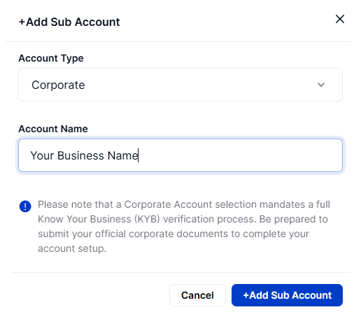 From there you'll be guided through our automated KYB verification to set up your company account.