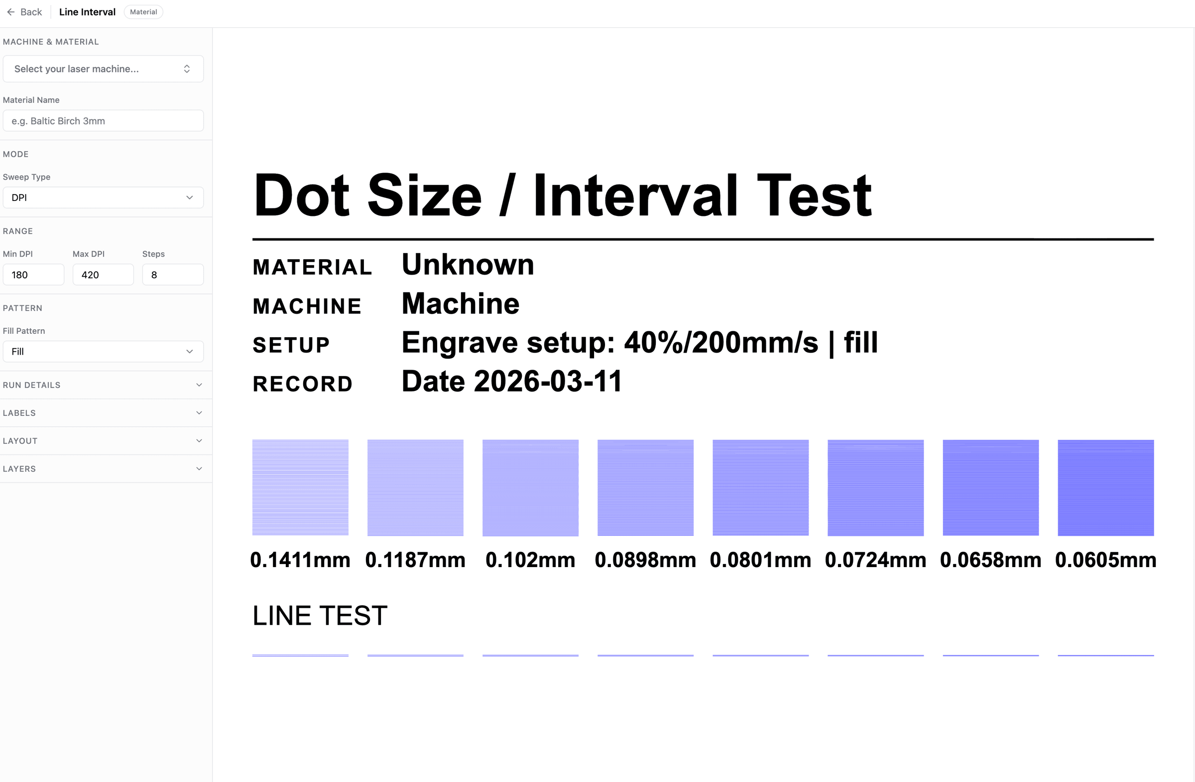 Hey, A couple weeks ago I was testing Image Lab, my new tool for preparing photos for laser engraving, on my own machine. The results were bad. I’m talking muddy, banded, obviously wrong. The kind of output that makes you feel like you’ve never touched a laser in your life. I stared at it for a minute before I figured out what had happened. I’d completely forgotten about line interval. With a 40W diode, the beam is way wider than you’d think. And if your line spacing is too tight, those lines pile on top of each other and you get an overburned mess. The fix is simple: you just need to know your actual dot size and match your interval to it. The problem is I didn’t have a fast way to visually figure that out. So I made a test for it. You set your machine, it generates a fill pattern in LightBurn at different DPI settings, you burn it on your material, and you can see exactly where your lines start overlapping versus separating cleanly. Five minutes and you know your machine’s sweet spot. Then I figured, as long as I’m at it — I built a few more. Power & Speed to find your material baseline. Dot Width Compensation for fine detail work. Material Thickness to nail your focus. They all live free in the Calibration section. No subscription, no credit card. They generate LightBurn files, you burn them, enter your results, and Laser Lab remembers the profile for each machine and material. → Run your calibration tests here (free) Laser on! Brandon The Auto-Enhance is the part I'm most proud of. It's not a brightness slider. It applies pro-level tone mapping, local contrast, and curve adjustments — but unlike Photoshop, it knows your laser's actual physics. It's adjusting for how dots will physically overlap on your material, not how pixels look on a screen. The result is a live preview that shows individual dots at real mm scale. What you see is what you engrave. → Check it out inside Laser Lab on a Founder Plan! |