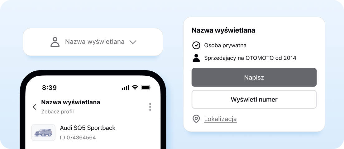 Możesz zachować nową nazwę, którą Ci przypisaliśmy, lub zmienić ją w dowolnym momencie w zakładce Moje Otomoto > Preferencje > Mój profil.