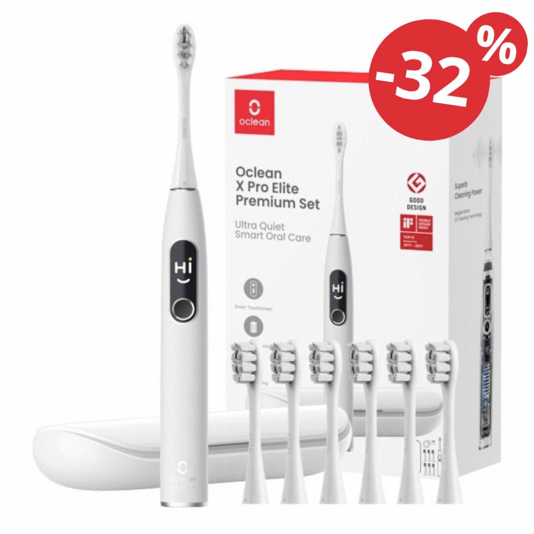 Tylko do końca dzisiejszego dnia możesz zakupić nowy zestaw Oclean X Pro Elite Premium z etui i 7 końcówkami aż o 32% taniej. Zestaw dostępny w dwóch kolorach - szarym i czarnym.