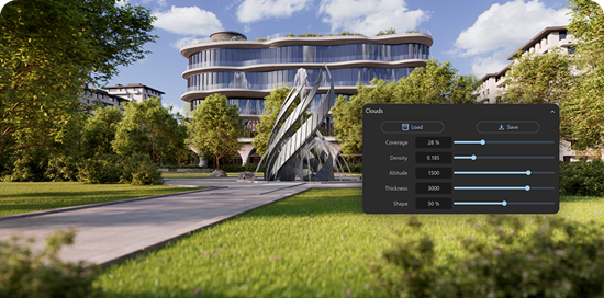 From clear blue skies to soft overcast light, Redshift lets you dial in cloud coverage and atmosphere with precision. See how subtle changes affect contrast, shadow softness, and emotional tone to add realism and intent to every render.