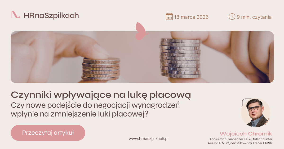 | | Adam, dlaczego wciąż mówimy o nierównościach płacowych, skoro mamy XXI wiek, a luka płacowa to wciąż problem, który nie znika? Wojciech Chromik, menedżer HRM, który w HR We Go prowadzi projekty wartościowania stanowisk pracy dla firm i instytucji, omawia czynniki wpływające na lukę płacową w Polsce. To ważne! Według badań mężczyźni częściej niż kobiety negocjują wyższe wynagrodzenie. Społeczne oczekiwania i wychowanie odgrywają tu kluczową rolę, gdyż przenoszą się na rynek pracy – kobiety obawiają się, że będą postrzegane jako trudne, jeśli zaczną negocjować. Dodatkowo, często brakuje im wzorców do naśladowania, a niejasne systemy wynagrodzeń nie pomagają. Brak umiejętności negocjacji prowadzi do niższych zarobków, a różnice te kumulują się przez lata. Zmiana wymaga edukacji i wsparcia, zarówno dla kobiet, jak i mężczyzn, oraz bardziej przejrzystych systemów wynagrodzeń. Pamiętaj, kto nie negocjuje, ten nie zyskuje. Czytaj więcej tutaj ➞ |