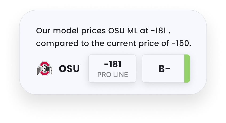 In-house model projections for spreads, totals, and player props.