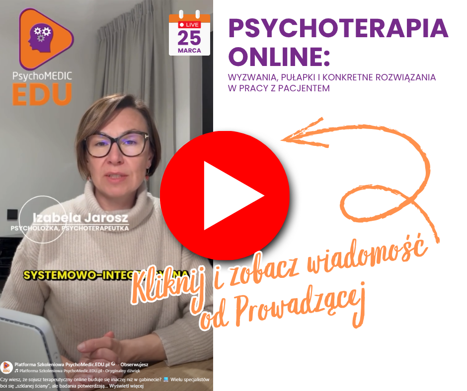 ⏰ Start: 18:00 ⏰ Psychoterapia online: wyzwania, pułapki, i konkretne rozwiązania w pracy z pacjentem