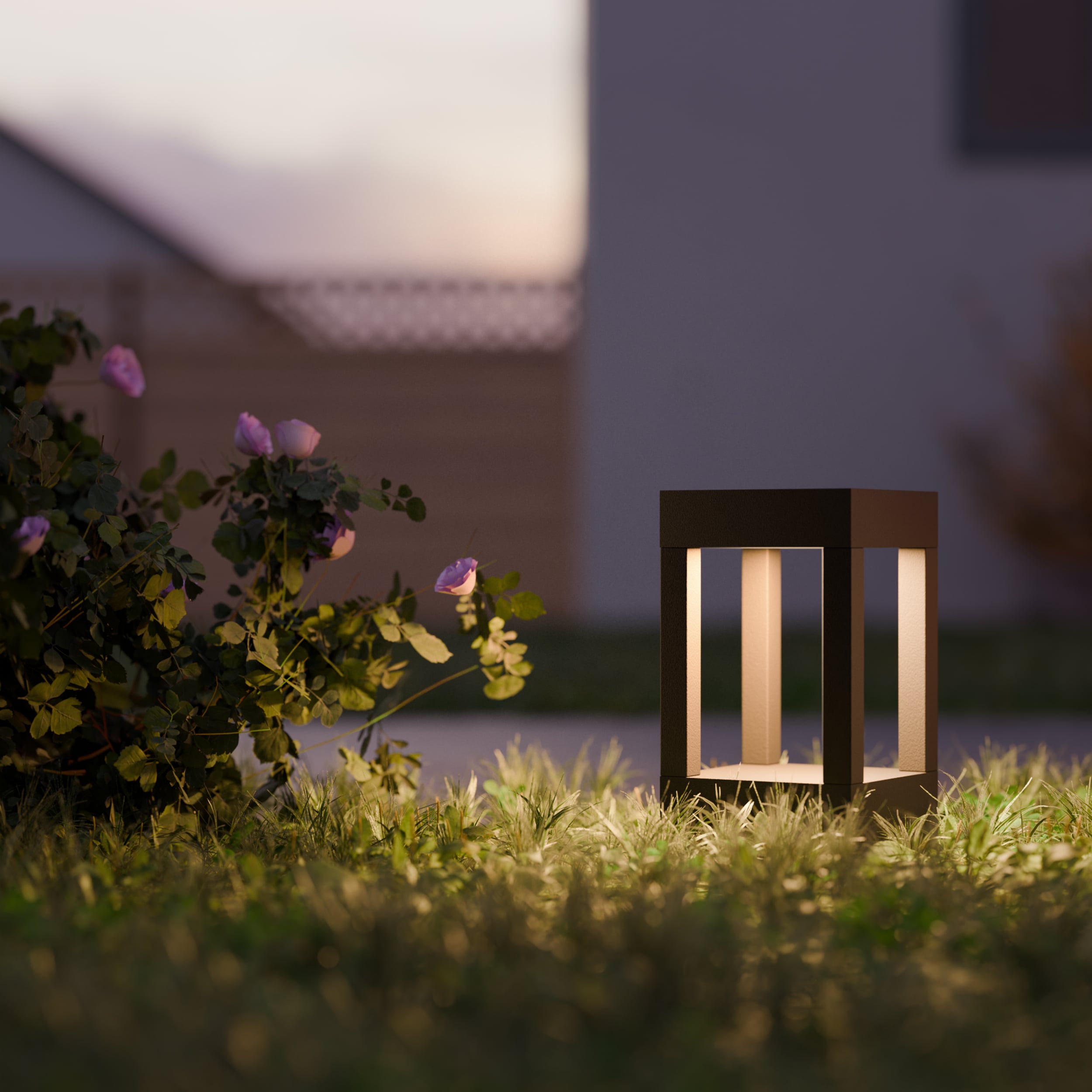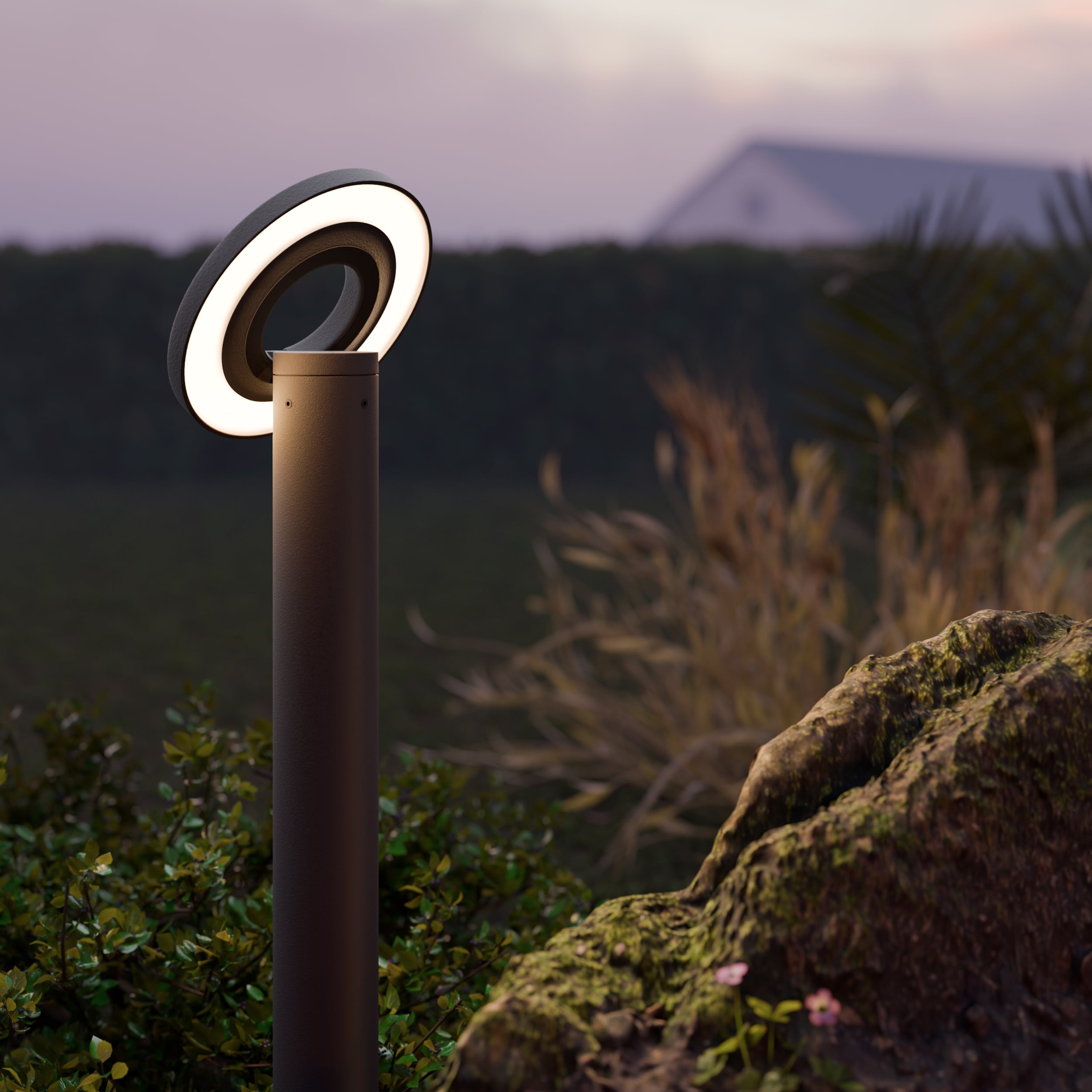 Corto Led to kompaktowa bryła, która porządkuje przestrzeń w ogrodach i wokół budynków. Jej światło eksponuje rośliny i nasadzenia, tworząc dekoracyjne akcenty świetlne podkreślające charakter miejsca. Dostępna w wymiarach: 20 cm wysokości i 11 cm szerokości.