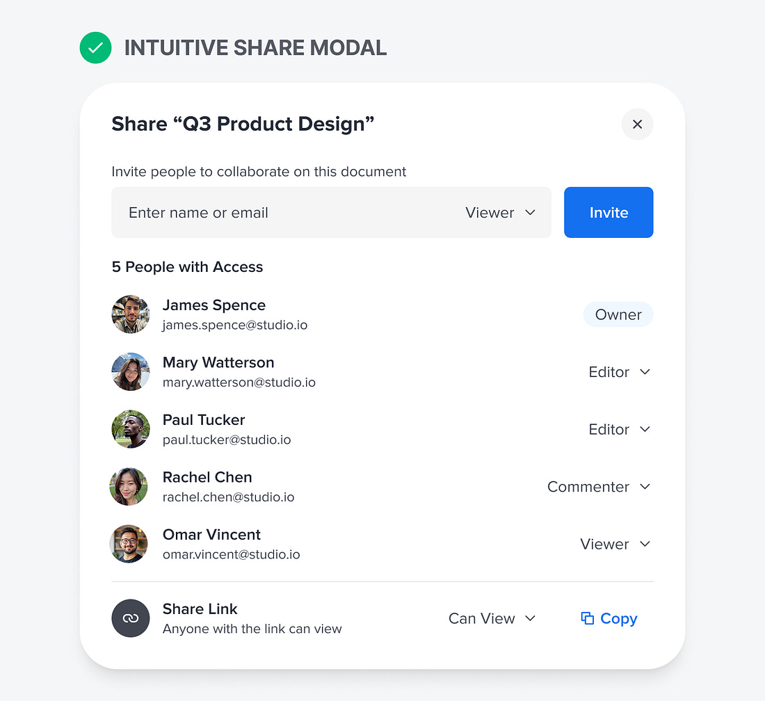 Sharing and collaboration are among the most powerful features in any SaaS application. It allows users to view, edit, and comment on the same document in real-time. However, designing it with an intuitive user experience is no easy task. There are many states, actions, and components to get right. This article walks you through how to design an intuitive share modal in thorough detail. Continue reading this post for free in the Substack app |