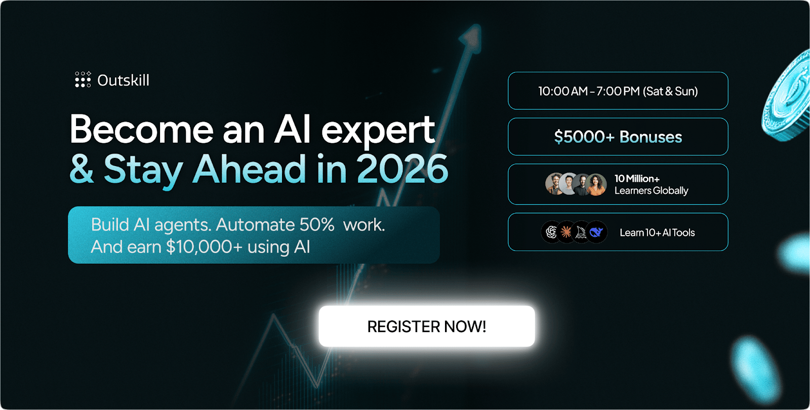Join Outskill's 2-day LIVE training that teaches you AI, the skill that makes you smarter, faster, more revenue-driven, and irreplaceable. This 16-hour course is everything you need to become an AI-powered professional in 2026.