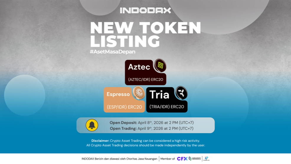 • Deposit AZTEC (ERC20); ESP (ERC20); TRIA (ERC20): 8 April 2026, 14:00 WIB