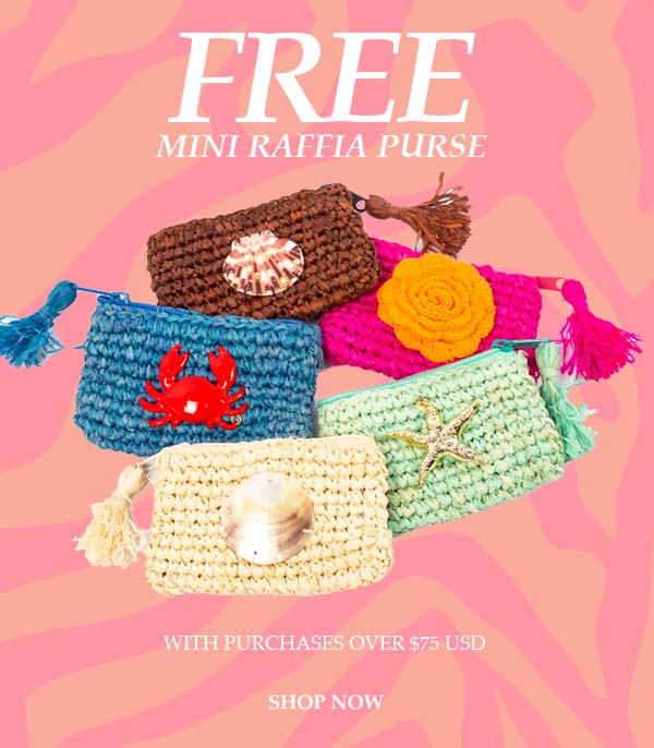 Spend $75 USD or more and we’ll throw in a Free Mini Raffia Purse — just because we love you. A purse will be selected at random and added manually to your order. Excludes use with other promotions.