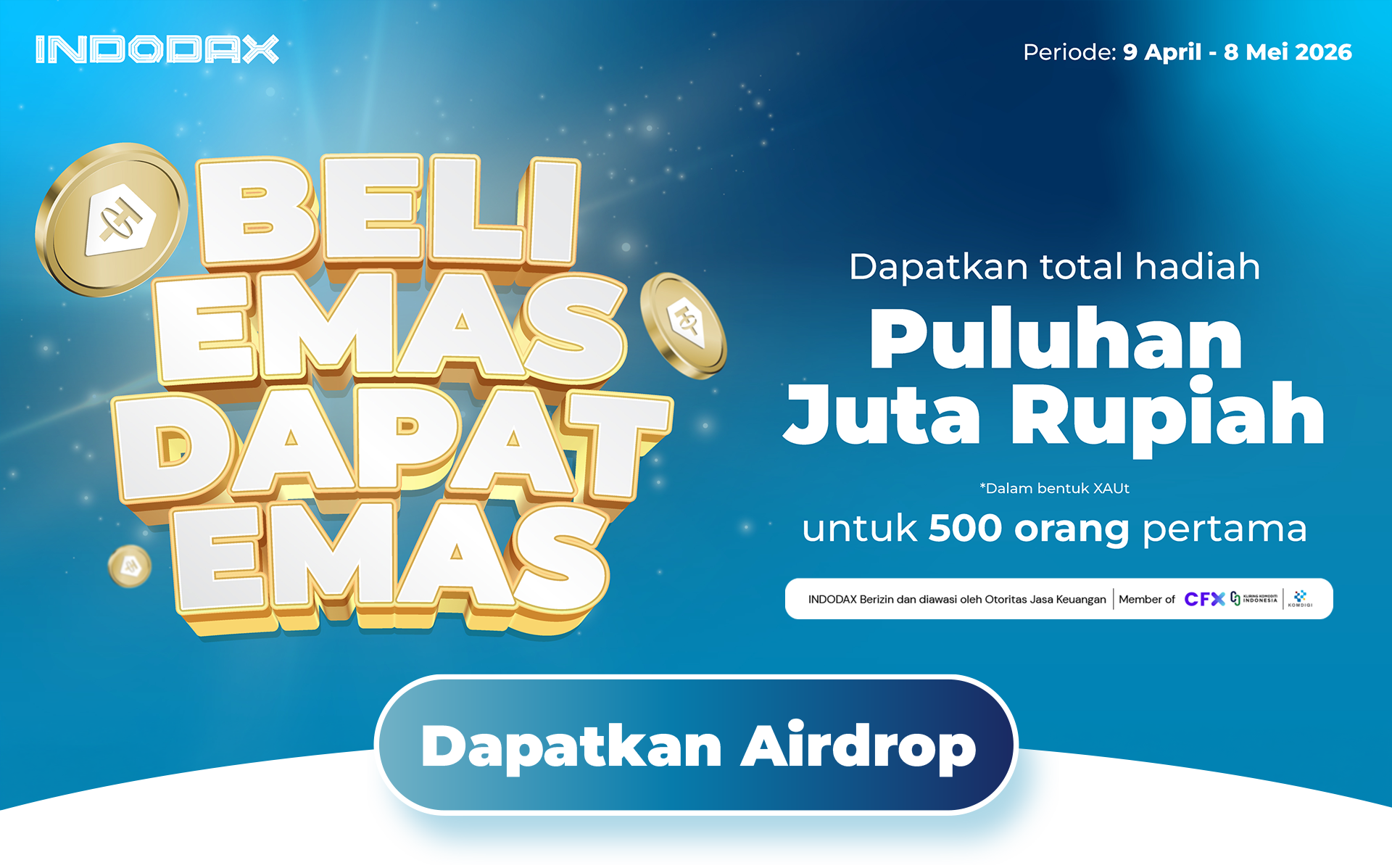 INDODAX menghadirkan kesempatan eksklusif bagi pengguna yang belum pernah membeli Tether Gold (XAUt) sebelumnya. Total hadiah senilai IDR 84.781.475  dalam bentuk XAUt siap dibagikan melalui airdrop langsung ke dompet Indodax Anda!