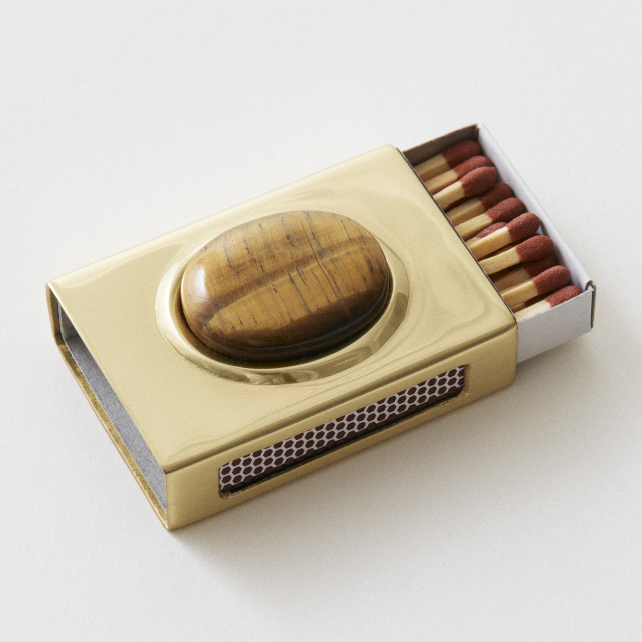 This dainty matchbox sleeve by Matilda Goad transforms a household staple and elevates the simple act of lighting a flame. Cast in brass and crowned with a caramel-hued tiger’s-eye stone, it’s an accessory that looks most at home alongside art books on a coffee table rather than hidden away in a kitchen drawer.