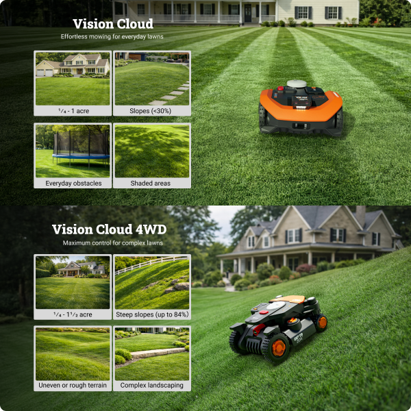 For steep slopes, muddy ground, or uneven terrain, choose the Vision Cloud 4WD: