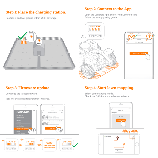 10–15 minutes to map your lawn (walk with it or let it auto-explore)