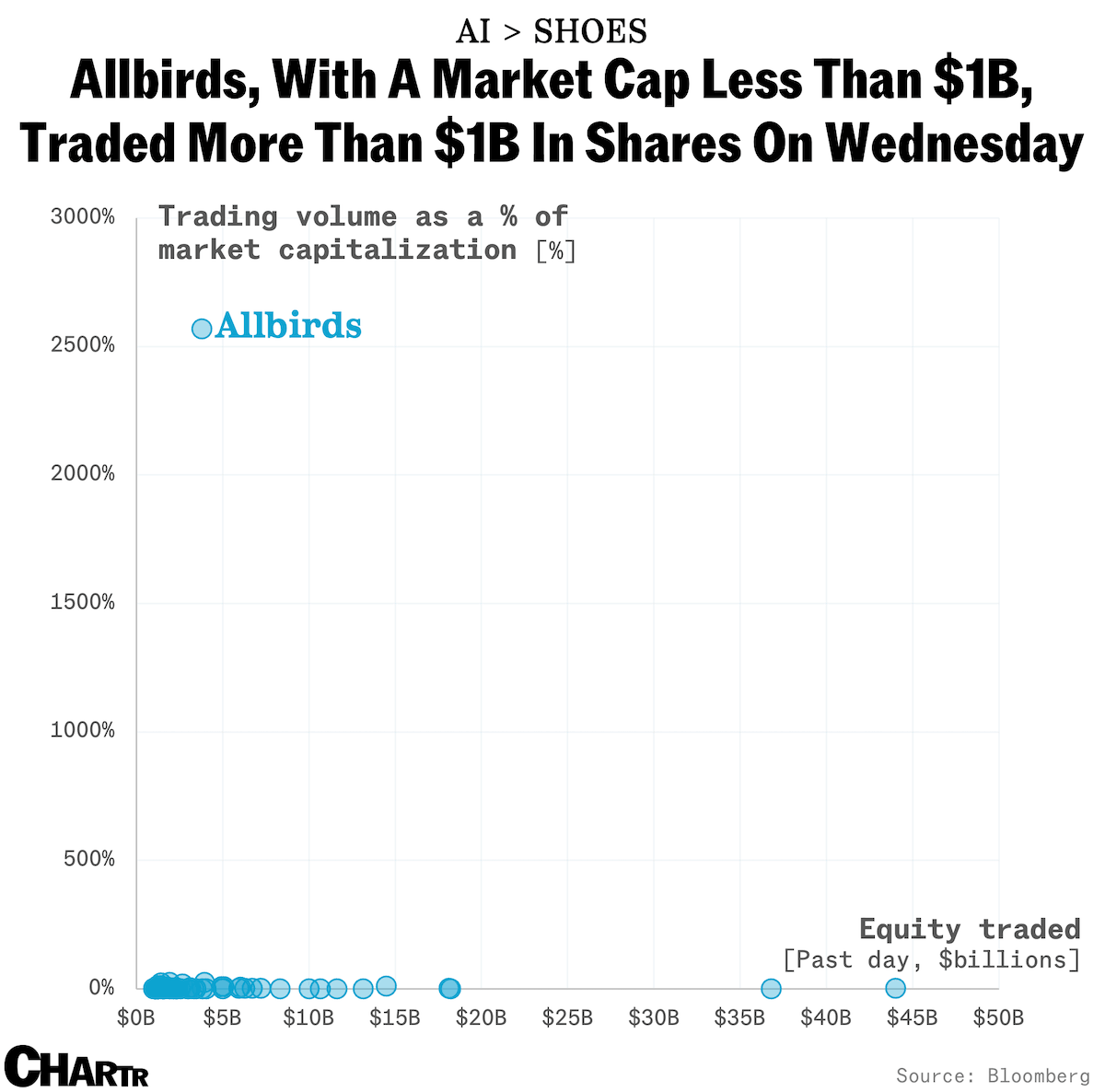- Fly high: Allbirds’ trading volume reached a record high after Wednesday’s AI pivot.
