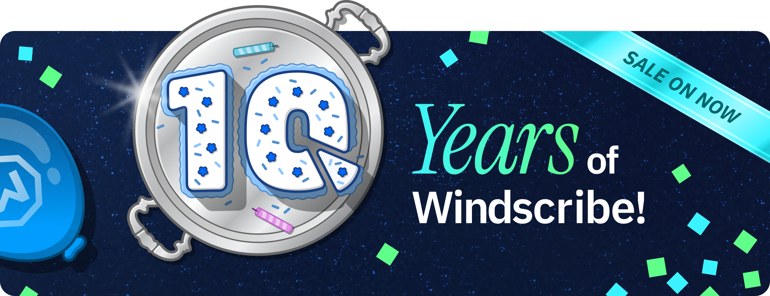 Birthday for us, Present for You! Windscribe Pro: $29/year (normally $69). That's only $2.42/month! Unlimited data, all servers, all protocols, R.O.B.E.R.T. in full beast mode. And it renews at $29, because bait-and-switch pricing is for chumps.