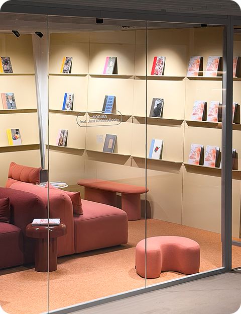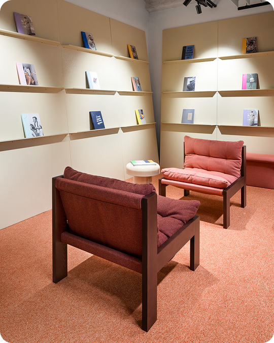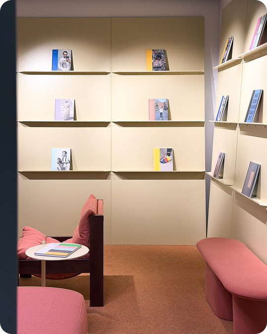 The reading room is now open: a playful space of bold colors, tactile materials, and welcoming furniture that encourages visitors to slow down, reset, and embrace a mindful moment. We invite you to just sit back, relax and enjoy your time.
