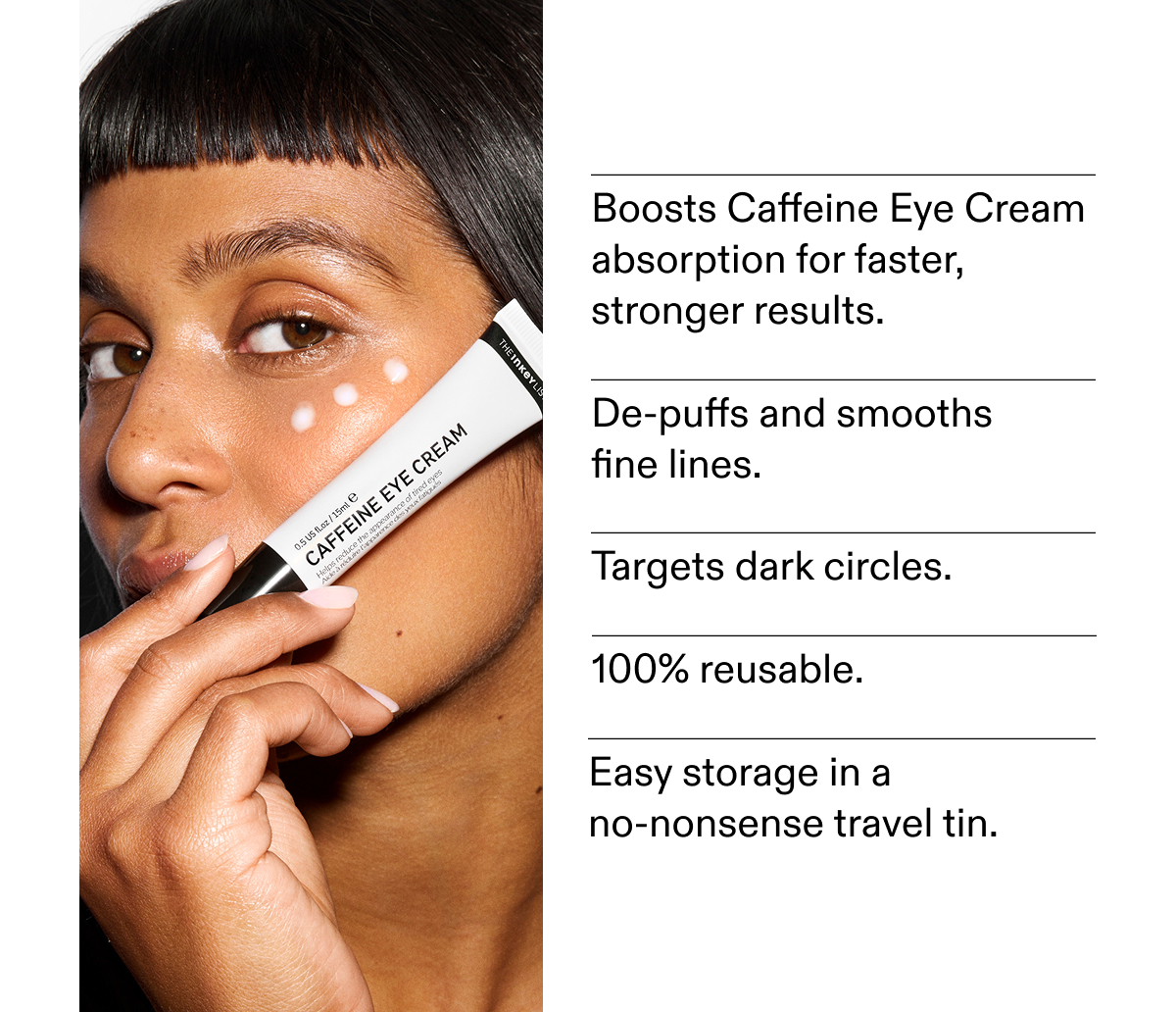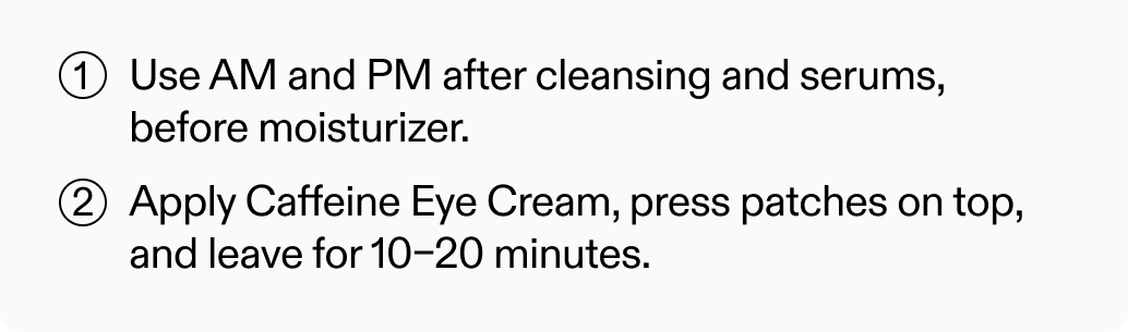 Our viral sell-out reusable eye patches are back in stock, now in a new design. We've paired them with Caffeine Eye Cream to deliver maximum absorption, deeper hydration, and visibly de-puffed under eyes.