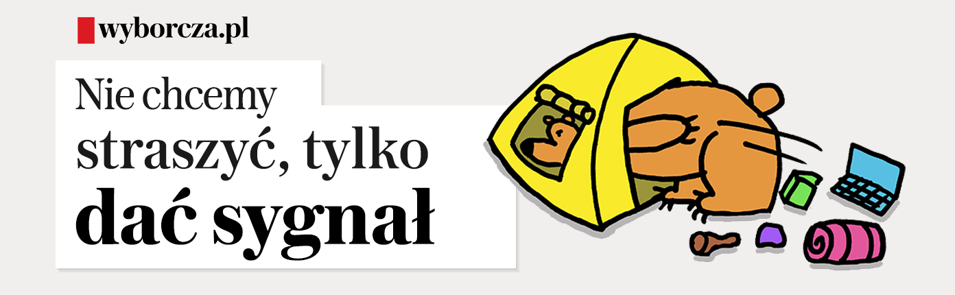 | Wyobraź sobie: siedzisz w namiocie, ciepło, spokojnie, a tu nagle… miś zaczyna grzebać przy wejściu. | To trochę jak my teraz stukający w Twoją skrzynkę. | Nie chcemy straszyć, tylko dać sygnał: | 15 stycznia tracisz dostęp do Wyborcza.pl | Jeszcze nie ma paniki. Możesz ogarnąć to na spokojnie, zanim zrobi się naprawdę pilnie, zanim miś postanowi wejść do środka. | Przedłuż dostęp i zachowaj wszystko, z czego korzystasz: analizy, komentarze, reportaże, wywiady, podcasty. |