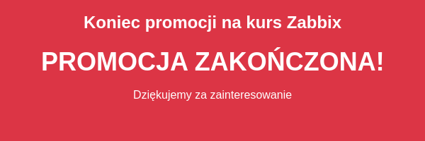 O północy już NIKT nie dołączy do szkolenia Zabbix - Monitoring Sieci i Serwerów. 100% gwarancji zadowolenia. 0% ryzyka. Zwrot do 30 dni Naturalnie, wystawiam fakturę VAT.