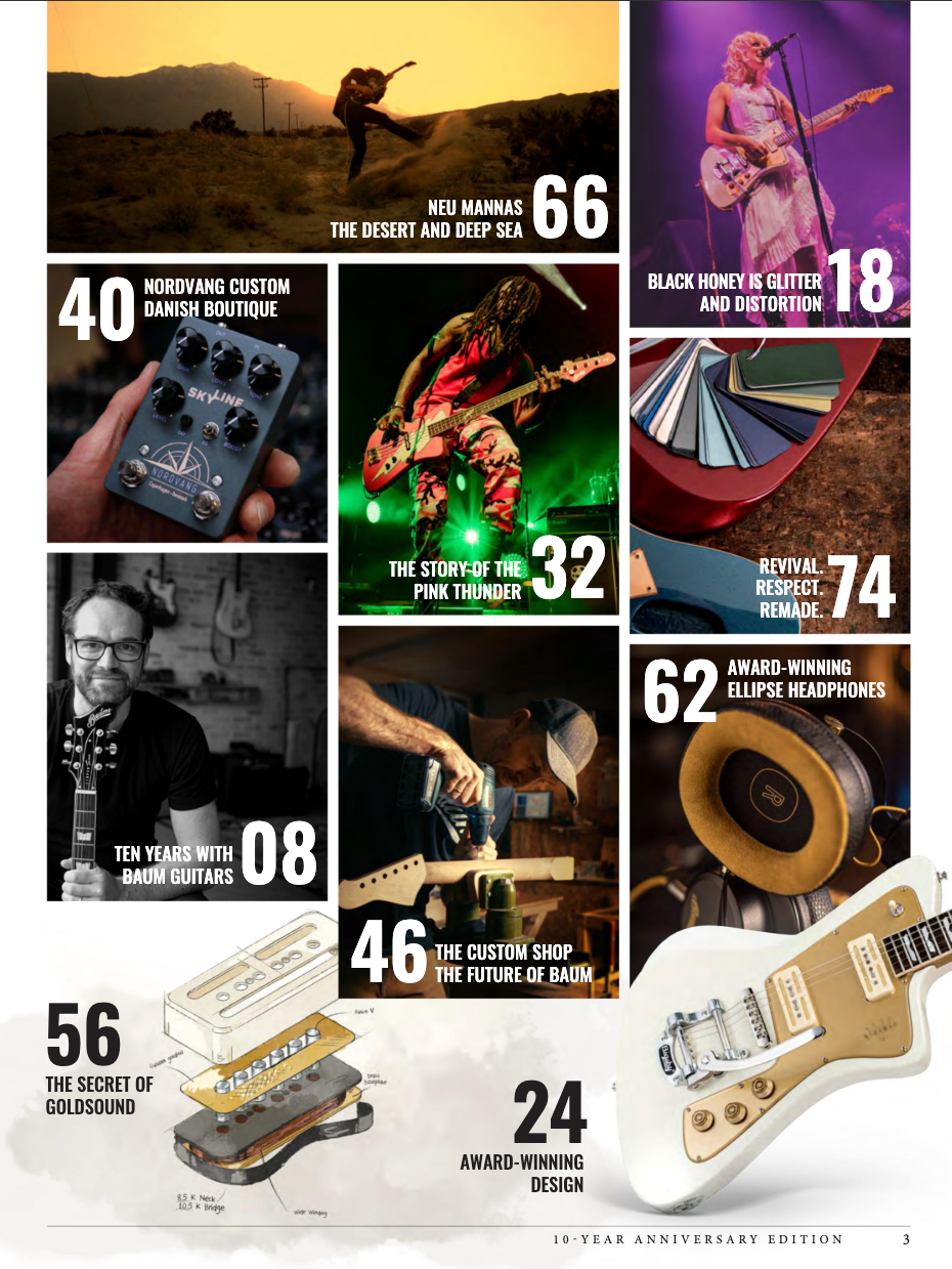 The first edition includes several deep dives into our small team, stories from our first 10 years as guitar makers (like how it all started), artist interviews with players like Seye Adelekan from Gorillaz and Izzy Phillips from Black Honey. Learn more about boutique pedal builder Nordvang or find insights from the Custom Shop. And so much more.