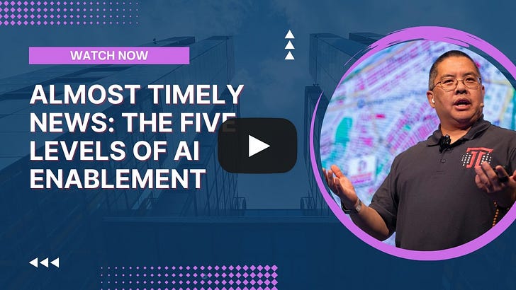 Almost Timely News: 🗞️ The Five Levels of AI Enablement (2026-03-22)Wherever you are, start climbingAlmost Timely News: 🗞️ The Five Levels of AI Enablement (2026-03-22) :: View in Browser The Big Plug👉 I’ve got a new course! GEO 101 for Marketers. 👉 Just updated! The Unofficial LinkedIn Algorithm Guide, March 2026, now with new information straight from LinkedIn! Content Authenticity Statement100% of this week’s newsletter content was originated by me, the human. It was recorded first, then transcribed and cleaned up by Claude Opus 4.6. Learn why this kind of disclosure is a good idea and might be required for anyone doing business in any capacity with the EU in the near future. Watch This Newsletter On YouTube 📺Click here for the video 📺 version of this newsletter on YouTube » Click here for an MP3 audio 🎧 only version » What’s On My Mind: The Five Levels of AI EnablementWhat’s on my mind this week? The five levels of AI enablement. This is something that has been banging around in my head for a while, and I want to try and get it out of my head and into some kind of written form. This all started a couple of years ago with my friend Brooke Sellas, who runs B Squared Media. Their thing was always done-for-you social media marketing; they now do customer experience. If you need an agency to help you with digital customer experience, they’re a terrific agency. But Brooke’s thing was always done for you. And I was like, well, what else is there? The other was done by you - you do the work. And so I was thinking to myself, well, if done by you and done for you exist, that seems like the equivalent of going out to eat at a restaurant or staying home and making something from scratch. So there’s got to be a middle ground. And the middle ground, of course, is done with you. That’s where you have - in food-analogy land - things like HelloFresh and Blue Apron and those meal delivery kits. The box arrives at your door, filled with refrigerated cooler packs and things. You unpack it, everything’s already pre-cut and pre-measured. You still have to cook it, but the process of preparation is largely done. For a while, that’s been product-market fit: done by you, done with you, done for you. Done by you, you do all the work. Done with you, you do some of the work. Done for you, you do none of the work. Part of product-market fit - and I’ve advised this to people for years - is that you have to have offerings at every level. Done by you is the lowest cost. You read a book like my book Almost Timeless. It’s a very low investment - I think it’s still $29 - but you have to do all the work. Done with you are things like apps, add-ons, and courses where a lot more has been prepared for you. And then done for you is you hire Trust Insights to go do the thing for you. Same with food: done by you, you cook from scratch - lowest cost, most labor. Meal kit, less labor, more cost. Done for you, no labor, highest cost. And so I started to apply this to AI. Part 1: Product Market Fit and AIIf we think about it, AI has kind of gone through these stages. In the beginning - 2023, right? ChatGPT came out in the fall of 2022, became popular in 2023 - when you’re sitting in front of ChatGPT prompting, that is the lowest possible level. In the five levels of AI enablement, that’s done by you. You sit down with ChatGPT and you’re like, hey, ChatGPT, do this thing, write me this blog post. Traditional, classic. Everybody has done that in some capacity. That’s the lowest level of this product-market fit framework. The second level up is things like GPTs, or Gems, or Projects. This came about in 2023 and 2024. GPTs and Gems are like mini apps inside of these tools that allow you to have some of the process baked in. I have a recipe maker Gem in Gemini that has all the rules about what I think is important in recipes, and it works great. I still have to do a fair amount of the work, but it has all the logic and all the prompts pre-built in it. I can just say, hey, I need a recipe for a whole wheat pancake mix, and it goes off and does that thing and hands it back to me. I still have to go make the pancakes. That’s the second level. The third level is where we get into agentic AI and the done-for-you model - and this is where we are starting to evolve. Here’s the full framework, absolutely, positively copyrighted to Trust Insights every way we can: Done by you. Done with you. Done for you. Done without you. Done anticipating you. Five levels. Let me walk through each one. Part 2: Mapping AI to Product Market FitLevel 1: Done By You This is pure level one. You chat with Claude or Gemini or ChatGPT, you’re doing all the work, lowest cost - $20 a month. You have access to the tools. This is what everybody knows. Here’s the problem with this level. It saves you time and gives you some capabilities, for sure - not saying it doesn’t. But when you hear people say, “I haven’t seen the ROI of AI,” it’s because they’re stuck at this level. Everybody’s got ChatGPT and they’re like, I don’t know what to use this for. This is all foundational. Learning how to prompt, learning how to talk to the systems, learning their ins and outs and their weaknesses, learning how to provide good data - because the more data you give, the less they hallucinate. This is level one. This is the base, this is the foundation. You have to learn this stuff first. But you can’t stay here. This is not the zone of productivity. About 75 to 80 per |