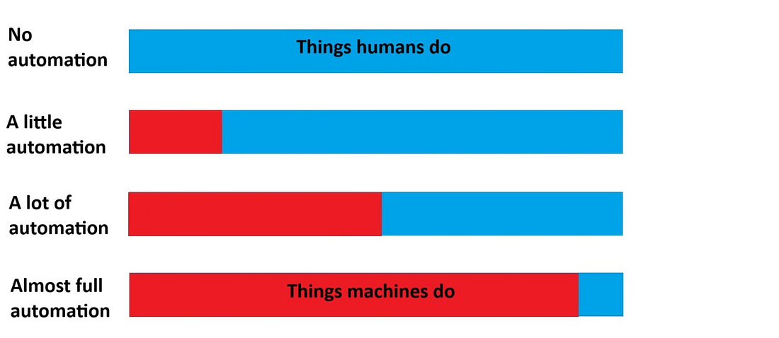 Ultimately, these boil down to the same thing: some sort of restriction on data centers. In other words, the economic danger of AI isn’t really that it’ll take all our jobs; the danger is that it’ll gobble up all the land and energy, leaving too little for human use. Thus, you can see my post as advocating some sort of limitation on data centers — perhaps not the hard cap that Bernie Sanders is advocating, but some sort of laws to make sure that AI never eats up too much of the energy and land that humans need to live. Anyway, here’s the original post, which I’m still quite proud of. I hang out with a lot of people in the AI world, and if there’s one thing they’re certain of, it’s that the technology they’re making is going to put a lot of people out of a job. Maybe not all people — they argue back and forth about that — but certainly a lot of people. It’s understandable that they think this way; after all, this is pretty much how they go about inventing stuff. They think “OK, what sort of things would people pay to have done for them?”, and then they try to figure out how to get AI to do that. And since those tasks are almost always things that humans currently do, it means that AI engineers, founders, and VCs are pretty much always working on automating human labor. So it’s not too much of a stretch to think that if we keep doing that, over and over, eventually a lot of humans just won’t have anything to do. It’s also natural to think that this kind of activity would push down wages. Intuitively, if there’s a set of things that humans get paid to do, and some of those things keep getting automated away, human labor will get squeezed into a shrinking set of tasks. Basically, the idea is that it looks like this: And this seems to fit with the history of which kind of jobs humans do. In the olden days, everyone was a farmer; in the early 20th century, a lot of people worked in factories; today, most people work in services: |