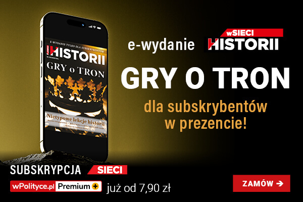 Drogi Czytelniku, Już jest najnowsze e-wydanie magazynu wSieci Historii zatytułowane „Gry o tron” – numer, który wciąga od pierwszej strony i zostaje na długo. Podróż po dziejach Polski zaczynamy w XVI wieku od panowania Henryka Walezego, a kończymy na ostatnim z Wazów, czyli Janie Kazimierzu. Wśród nietypowych lekcji historii, które przygotowaliśmy dla naszych Czytelników, znalazły się również teksty o myśliwcach toczących wojny w przestworzach oraz o modnych kobietach z rokoko, empire i belle époque. To wydanie jest dostępne wyłącznie dla Subskrybentów. Wystarczy zamówić dostęp właśnie teraz, by stać się jednym z nich. Roczna e-prenumerata kosztuje tylko 119,90 zł (12 miesięcy w cenie 6). Zamów roczną subskrypcję, dostępna wyłącznie pod tym linkiem. Jeśli wolisz krótszą formę, możesz skorzystać z oferty miesięcznej: tylko 7,90 zł za pierwszy miesiąc (potem 15,90 zł miesięcznie). Zamów miesięczną subskrypcję. Zamawiając subskrypcję, pobierzesz „Gry o tron” w prezencie. Zyskasz również wszystkie dotychczasowe e-wydania wSieci Historii oraz Sieci Extra, czyli wartościowe e-booki o różnorodnej tematyce. Dziękujemy, że jesteś z nami. Twoja subskrypcja pomaga nam rozwijać niezależne, wolne, prawdziwie polskie media. Z czytelniczymi pozdrowieniami, Redakcja tygodnika Sieci i portalu wPolityce.pl