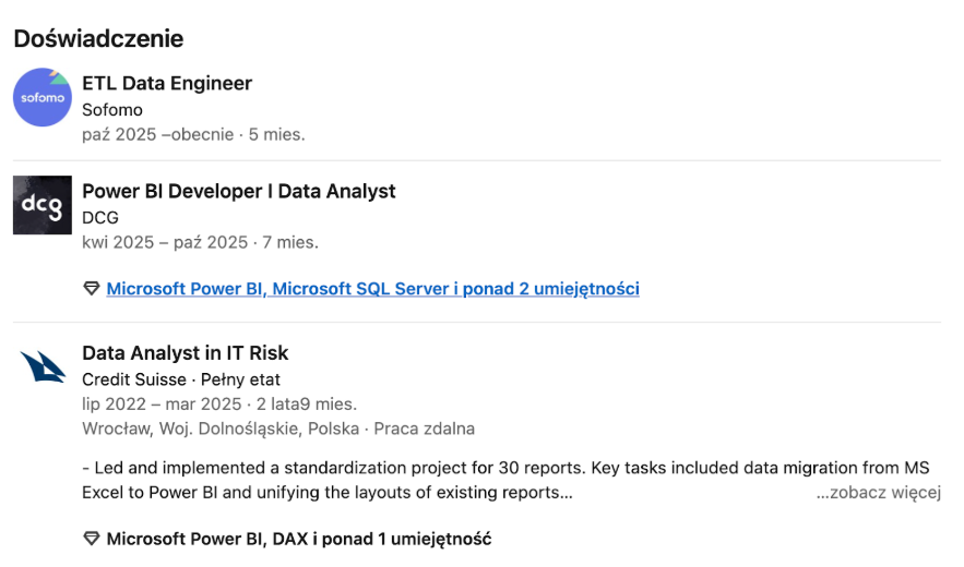 Efekt? Dziś Zuzanna pracuje już na 3-cim stanowisku związanych z danymi. Zaczęła od pracy w pełni zdalnej. Jest z siebie dumna, bo zamiast szukać „czegoś lepszego” i tracić czas, po prostu zaufała sprawdzonej instrukcji.
