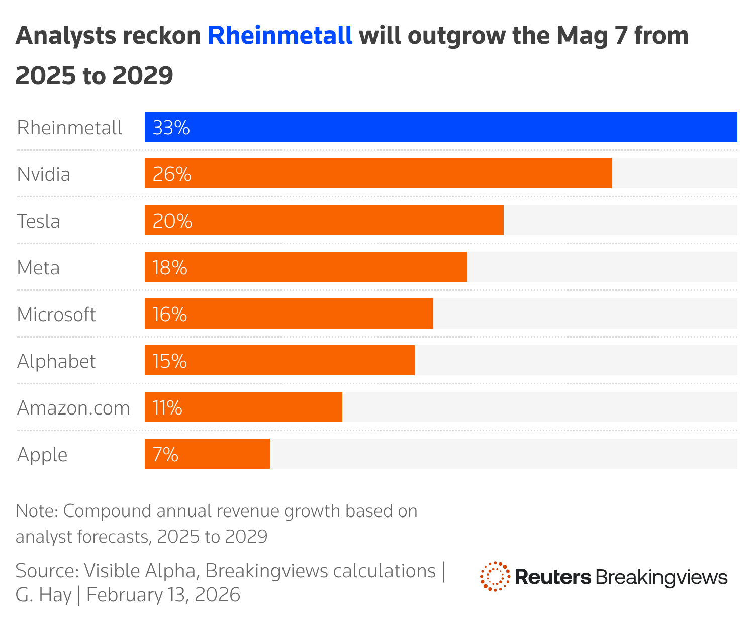 Rheinmetall is the poster child for European rearmament. The German tankmaker’s market value has soared from 4 billion euros four years ago to 70 billion euros today. Its ability to snag a large share of Europe’s increased defence spending means analysts expect its revenue to grow faster than the “Magnificent 7” big technology companies. Is this good for competition? George Hay has his doubts.